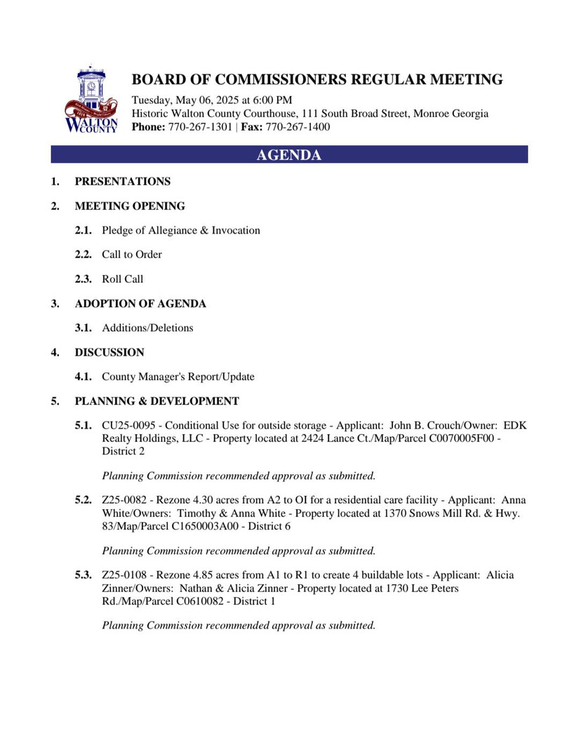 Walton County Board of Commissioners Regular Meeting Today